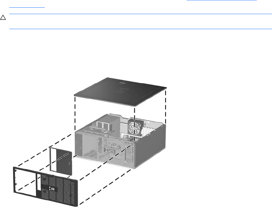15. Plaats het voorpaneel en het toegangspaneel van de computer terug.