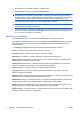 Tabulka 2-12 Řešení potíží se sítí (pokračování) Síťový adaptér přestává bez příčiny pracovat. Příčina Řešení Soubory obsahující síťové ovladače jsou poškozeny. Přeinstalujte síťové ovladače pomocí sady disků obnovy vytvořené z oddílu pro obnovu pevného disku. Kabel není řádně připojen. Ověřte, zda je kabel řádně připojen ke konektoru sítě a zda je druhý konec kabelu řádně připojen ke správnému zařízení. Síťový adaptér je vadný. Obraťte se na autorizovaného prodejce.