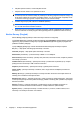 HP Backup and Recovery Manager je unapred instaliran na particiji za obnavljanje na čvrstom disku i omogućava vam da: ● napravite referentne tačke obnavljanja kako biste napravili rezervnu kopiju celog sistema ● napravite rezervnu kopiju celog sistema u jednoj arhivi ● napravite rezervne kopije pojedinačnih datoteka i fascikli Referentne tačke obnavljanja i rezervne kopije datoteka mogu da se kopiraju na CD ili DVD diskove, dok sve rezervne kopije mogu da se kopiraju na mrežu ili sekundarne čvrste dis