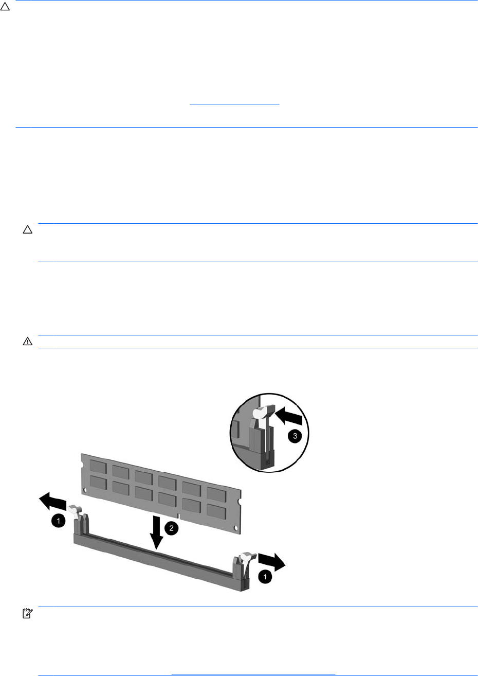 加或卸下内存模块可能会对内存模块或主板造成不可修复的损坏。