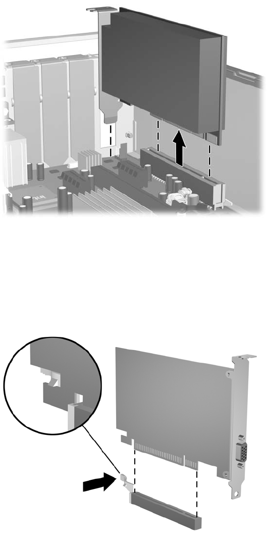 Træk udvidelseskortet lige ud af stikket og derefter ud af kabinettet for at frigøre det helt fra
