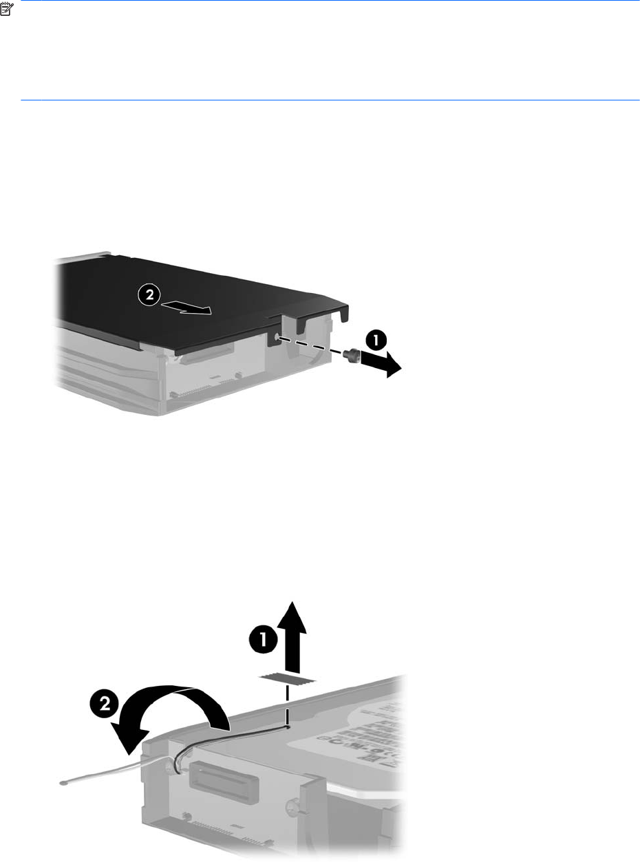 3. Fjern tapen, der fastgør den termiske sensor til toppen af harddisken(1), og fjern den termiske
