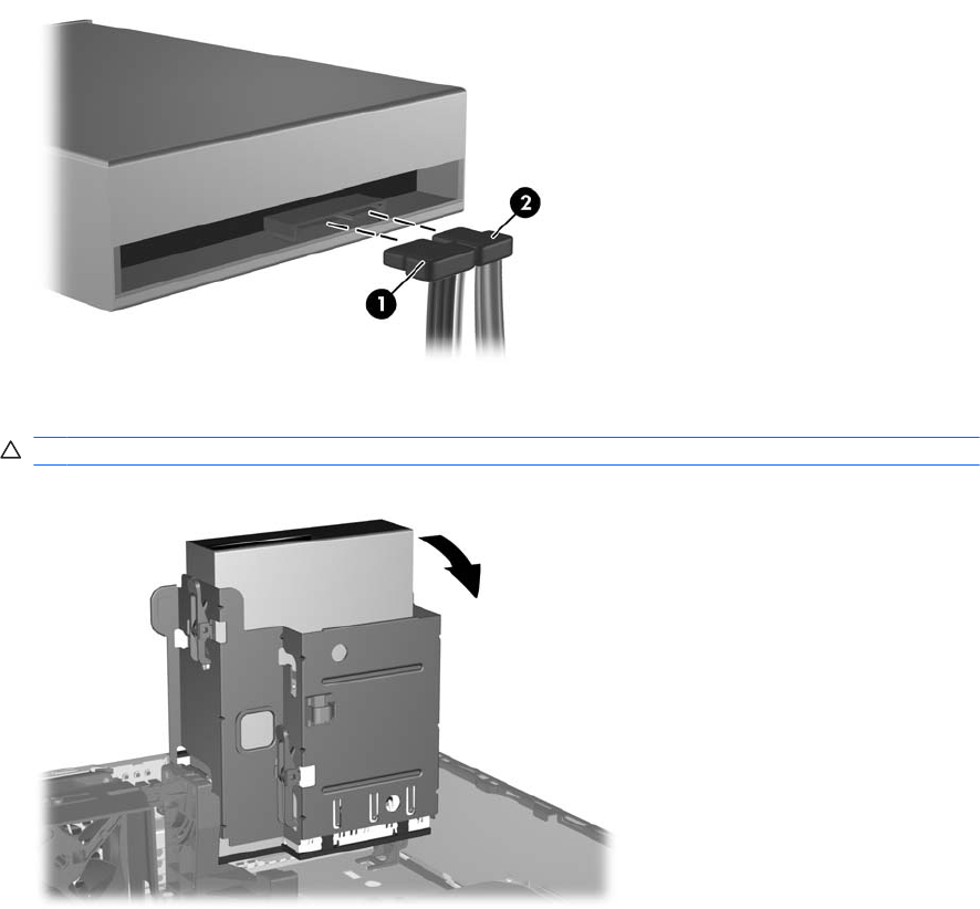 CAUTION: Be careful not to pinch any cables or wires when rotating the drive cage down.
