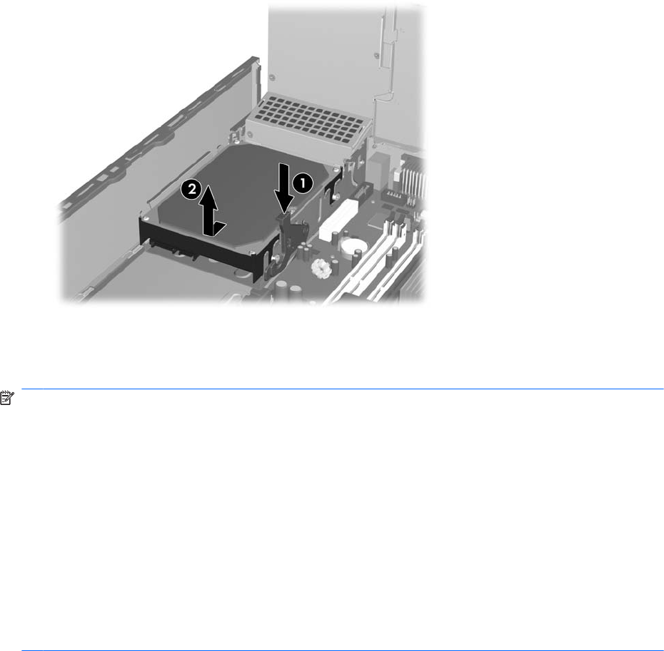 slide the drive forward until it stops, then lift the drive up and out of the bay (2).