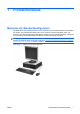 11. Richten Sie den Computer so aus, dass die rechte Seite nach unten zeigt. Abbildung 2-2 Umwandeln des Desktop-Systems in ein Tower-System HINWEIS: Um den Computer bei der Verwendung als Tower-System zu stabilisieren, empfiehlt HP die Verwendung eines optionalen Tower-Standfußes. 12. Schließen Sie das Netzkabel und gegebenenfalls weitere Peripheriegeräte wieder an und schalten Sie den Computer ein. 13. Verriegeln Sie die Sicherheitsvorrichtungen, die beim Entfernen der Abdeckung gelöst wurden.