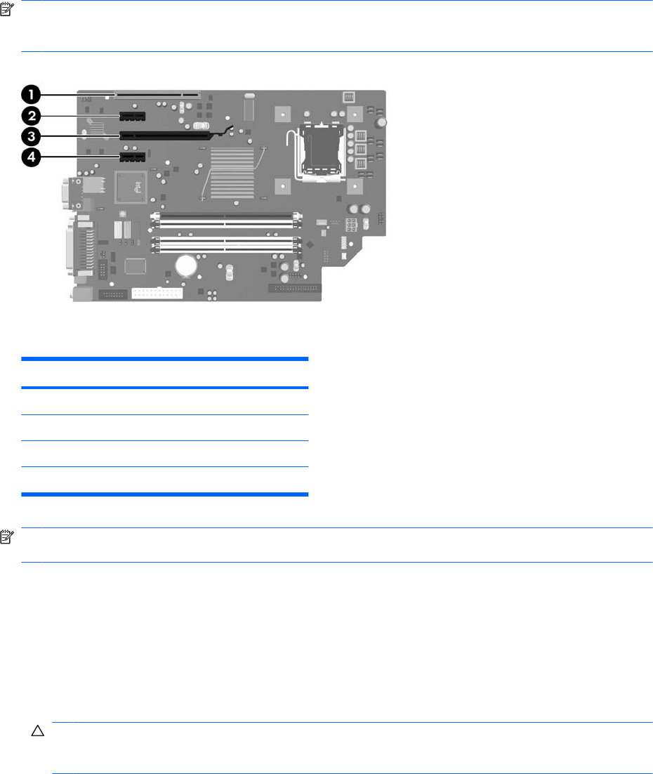 OBS! I PCI-expansionsplatserna kan du endast installera expansionskort med låg profil. Ett riser-kort