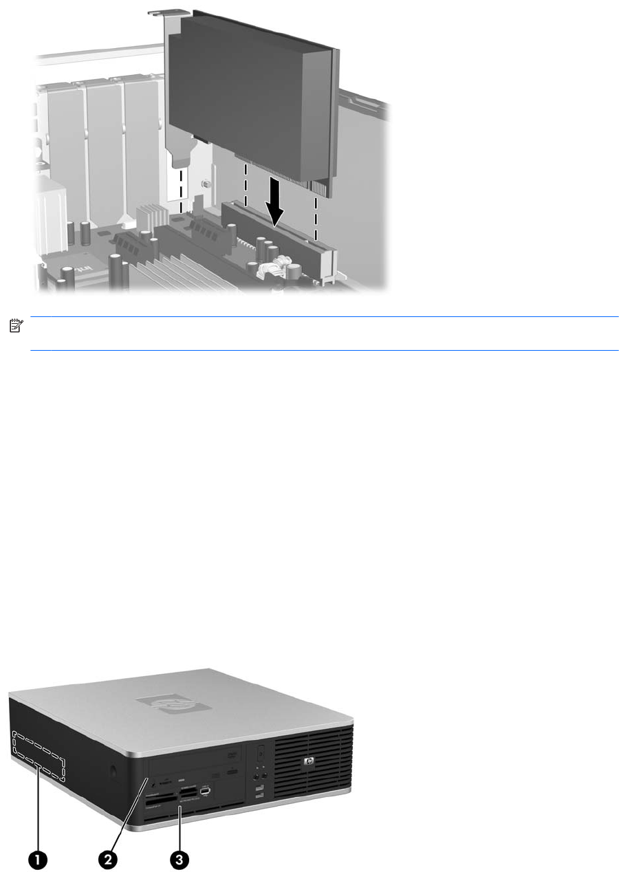 12. Installera ett nytt expansionskort genom att skjuta kortet under täckplåtens låshake och därefter
