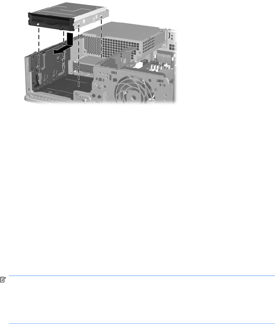 3. Placera enhetens styrskruvar i enhetshållarens J-skåror. Skjut sedan enheten mot datorns