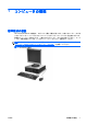 11. コンピュータを右側面が下になるように立てます。 図 2-2 横置きから縦置きへの移行 注記: 縦置きでのコンピュータの安定性を高めるために、付属の縦置き用スタンドを使用する ことをおすすめします。 12. 電源コードおよびすべての外付けデバイスを接続しなおして、コンピュータの電源を入れます。 13. アクセス パネルを取り外すときに外したセキュリティ デバイスをすべてロックします。 注記: い。 10 通気を確保するため、コンピュータの周囲 10.