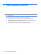 Initiera en återställning i Windows Gör så här för att initiera en återställning i Windows: 12 1. Säkerhetskopiera alla personliga filer. 2. Välj Start > Alla program > HP Backup & Recovery > HP Backup & Recovery Manager. 3. Klicka på Nästa. 4. Klicka på Återställa viktiga filer eller hela systemet och därefter på Nästa. 5. Följ instruktionerna på skärmen.