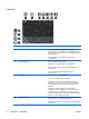 NLWW Onderdeel Beschrijving (7) Schuifzone voor het geluidsvolume Hiermee past u het geluidsvolume aan. Schuif met uw vinger naar links om het volume te verlagen en naar rechts om het volume te verhogen. (8) HP Fingerprint Sensor Hiermee kunt u zich met een vingerafdruk bij Windows aanmelden, in plaats van met een wachtwoord.