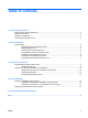 - Table of contents 1 Using the pointing devices Setting pointing device preferences ..................................................................................................... 1 Using the TouchPad ............................................................................................................................. 2 Using the pointing stick ........................................................................................................................