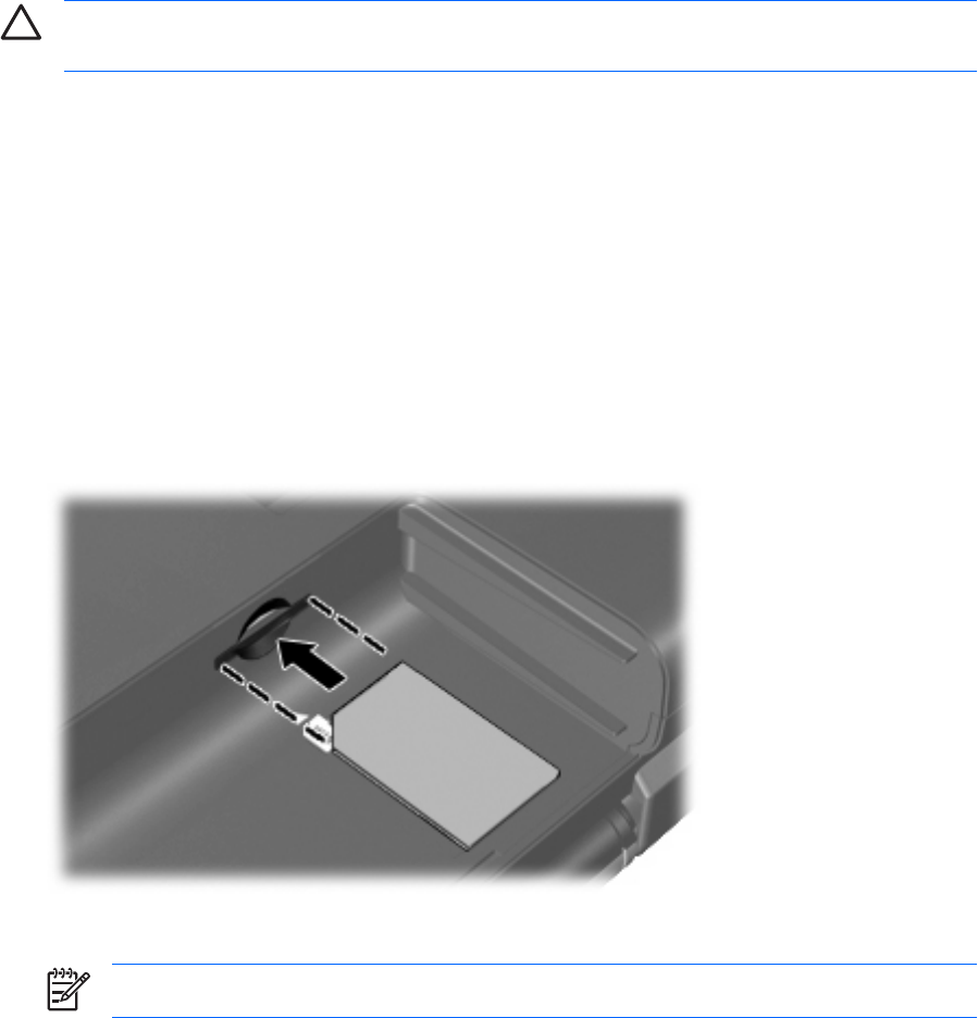 MERK: HP Broadband Wireless deaktiveres hvis du ikke setter batteriet på plass.