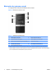 Éléments du panneau avant La configuration des unités peut être différente selon le modèle. Figure 1-2 Éléments du panneau avant Tableau 1-1 Éléments du panneau avant 1 Unités optiques 5,25 pouces1 6 Voyant d'activité du disque dur 2 Voyant d'activité de l'unité optique 7 Boutons d'éjection de l'unité optique 3 Lecteur de carte multimédia 3,5 pouces (facultatif) 8 Connecteur de casque 9 Ports USB (Universal Serial Bus) 2.
