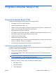 ● Boot (Zagon) ● Exit (Izhod) S puščičnimi tipkami izberite ustrezni naslov in nato pritisnite tipko Enter. S puščičnimi tipkami (gor in dol) izberite možnost in nato pritisnite tipko Enter. Če se želite vrniti na predhodni zaslon, pritisnite Esc. POZOR: NE izklapljajte računalnika, dokler ROM shranjuje spremembe, ki ste jih naredili v programu Computer Setup (F10), ker se utegne pomnilnik CMOS poškodovati. Ko se zaslon F10 Setup zapre, lahko računalnik varno izklopite.