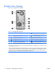 Στοιχεία πίσω πλευράς Εικόνα 1-4 Στοιχεία πίσω πλευράς Πίνακας 1-3 Στοιχεία πίσω πλευράς 1 Υποδοχή καλωδίου τροφοδοσίας 6 Υποδοχή εξόδου για συσκευές ήχου που τροφοδοτούνται με ρεύμα (πράσινη) 2 Διακόπτης επιλογής τάσης 7 Υποδοχή μικροφώνου 3 Υποδοχή εισόδου ήχου (μπλε) 8 USB (Universal Serial Bus) 4 Υποδοχή δικτύου RJ-45 9 Υποδοχή οθόνης VGA (μπλε) 5 Υποδοχή ποντικιού PS/2 (πράσινη) 10 Υποδοχή πληκτρολογίου PS/2 (μωβ) ΣΗΜΕΙΩΣΗ Η διάταξη και ο αριθμός των υποδοχών ενδέχεται να ποικίλλο