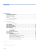 Innhold 1 Produktegenskaper Standard konfigurasjonsfunksjoner ...................................................................................................... 1 Frontpanelkomponenter ....................................................................................................................... 2 Minnekortleserkomponenter ................................................................................................................. 3 Komponenter på bakpanelet ................................
