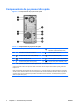 Componentele cititorului de cartele Cititorul de cartele este un dispozitiv opţional, disponibil numai pe unele modele. Consultaţi ilustraţia şi tabelul următor, pentru identificarea componentelor cititorului de cartele.