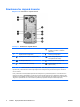 Клавиатура Рисунок 1-5 Компоненты клавиатуры Таблица 1-4 Компоненты клавиатуры 1 RUWW 1 Функциональные клавиши Выполняют те или иные функции в зависимости от используемого программного приложения. 2 Клавиши правки Представляют собой группу следующих клавиш: INSERT, HOME, PAGE UP, DELETE, END и PAGE DOWN. 3 Индикаторы состояния Отображают состояние компьютера и параметры клавиатуры (NUM LOCK, CAPS LOCK и SCROLL LOCK). 4 Цифровые клавиши Выполняют функции, аналогичные панели калькулятора.