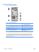 Súčasti zadného panela Obrázok 1-4 Súčasti zadného panela Tabuľka 1-3 Súčasti zadného panela 1 Konektor pre napájací kábel 6 Konektor pre výstup zvuku pre napájané zvukové zariadenia (zelený) 2 Prepínač napätia 7 Konektor pre mikrofón 3 Konektor pre vstup zvuku (modrý) 8 Rozhranie USB (Universal Serial Bus) 4 Sieťový konektor RJ-45 9 Konektor VGA pre monitor (modrý) 5 Konektor pre myš PS/2 (zelený) 10 Konektor pre klávesnicu PS/2 (purpurový) POZNÁMKA: Usporiadanie a počet konektorov sa