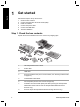 English 1 Get started Follow these steps to set up the scanner: 1. 2. 3. 4. 5. 6. Check the box contents. Connect the automatic document feeder (ADF). Install the software. Connect the power cable. Connect the USB cable. Test the installation. Step 1. Check the box contents Unpack the scanner hardware. Be sure to remove any shipping tape. 7 1 8 2 6 3 4 9 10 2 1 1 23 www.hp.