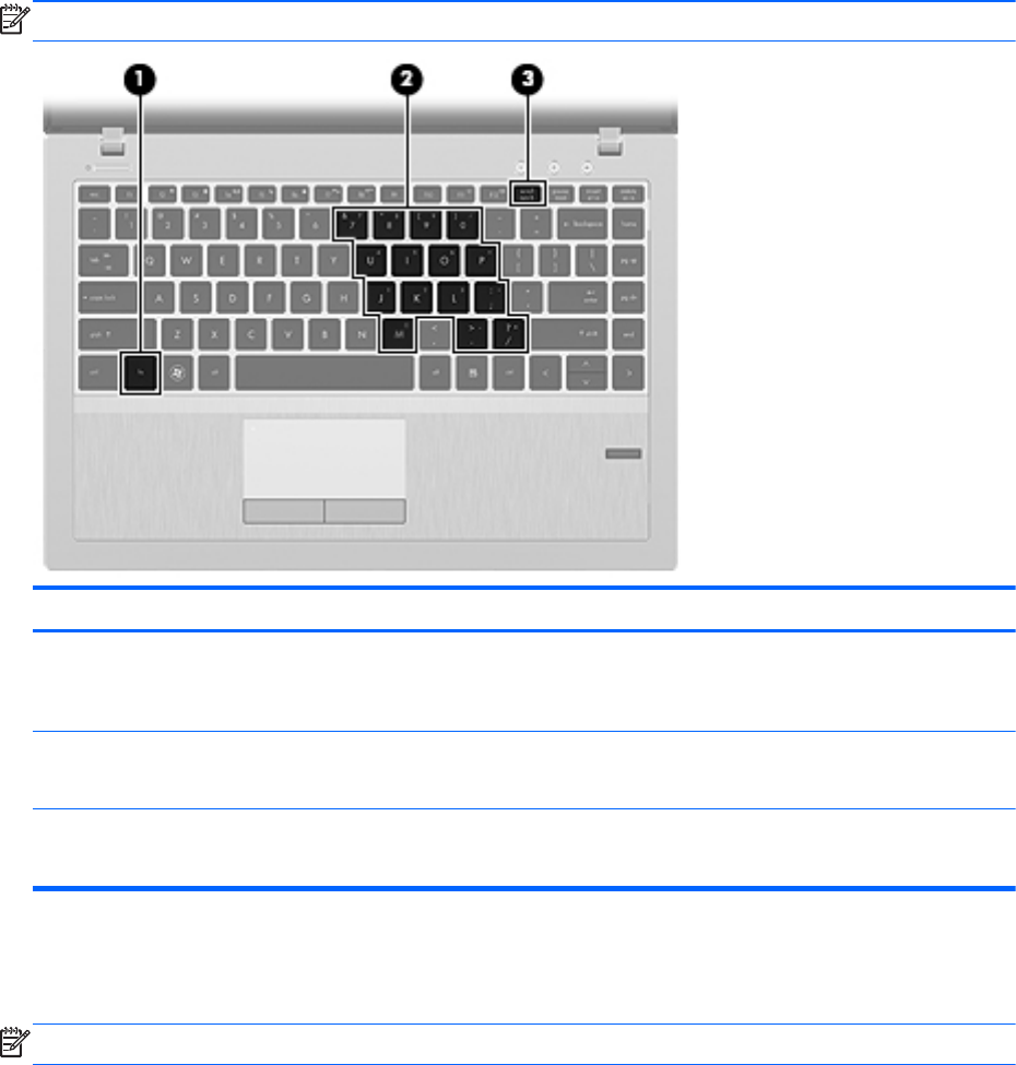 附註: 當您將外接式鍵盤或數字鍵台連接至電腦時,系統就會關閉嵌入式數字鍵盤。