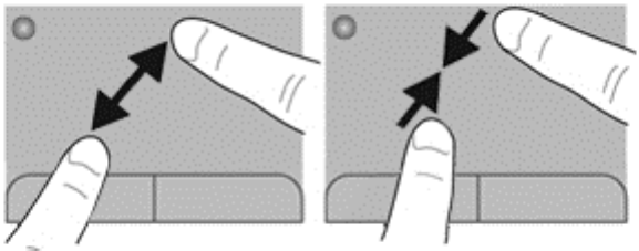 在觸控板感應區上,先將兩根手指分開,然後再併攏手指,即可縮小物件。
