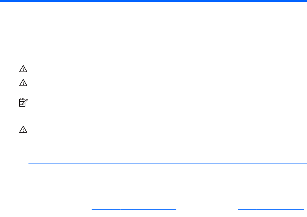 先關閉電腦,然後再新增或更換記憶體模組。當電腦開啟、處於睡眠狀態或休眠狀態時,切勿取出記憶