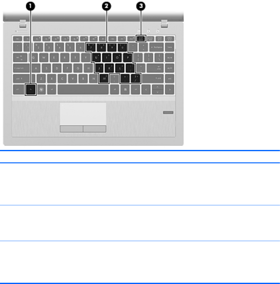 (1) Tecla fn Ativa e desativa o teclado numérico incorporado quando