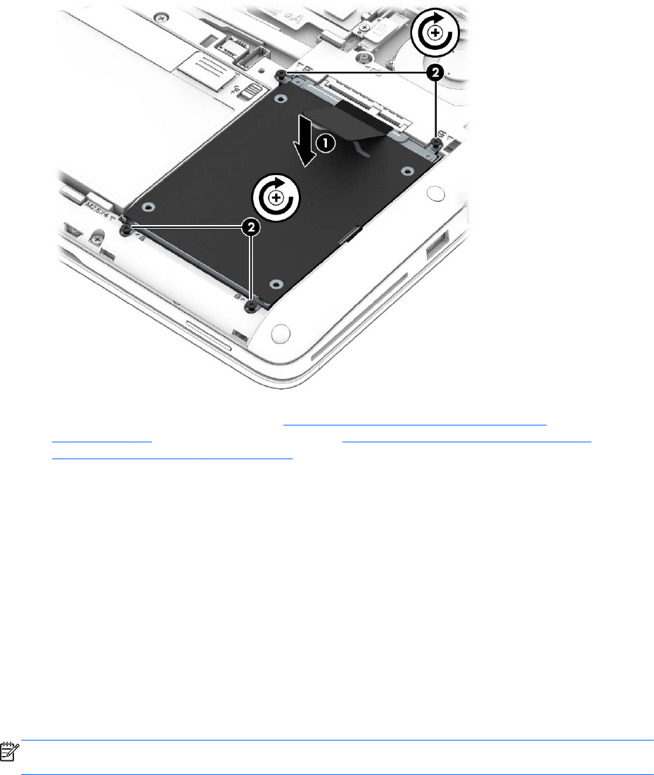 2. Поставете отново четирите винта (2), за да захванете твърдия диск.