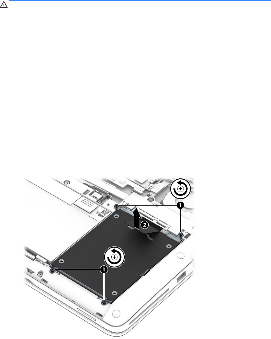 на твърдия диск (2) нагоре, след което премахнете твърдия диск.