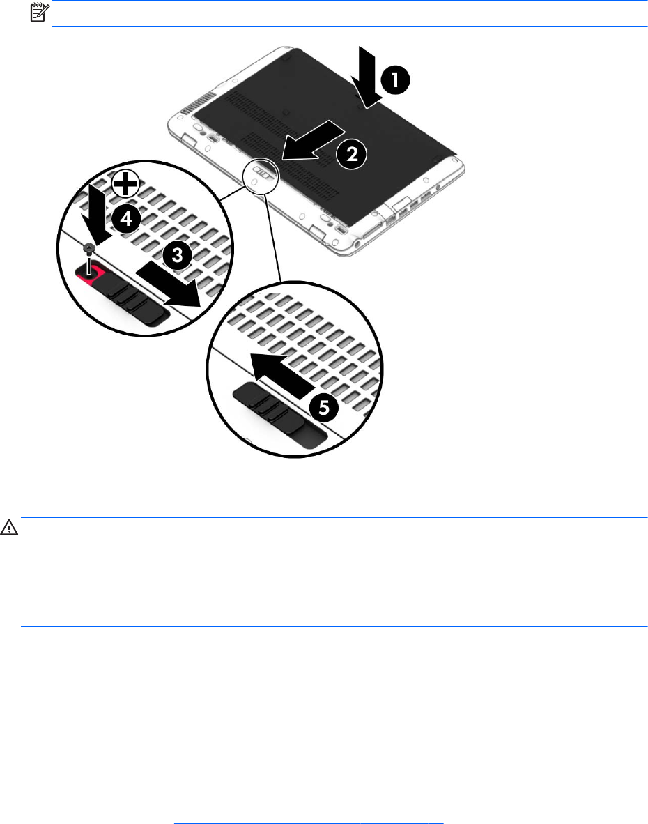 Pomaknite zasun za otpuštanje ulijevo da biste zaključali servisna vratašca (5).
