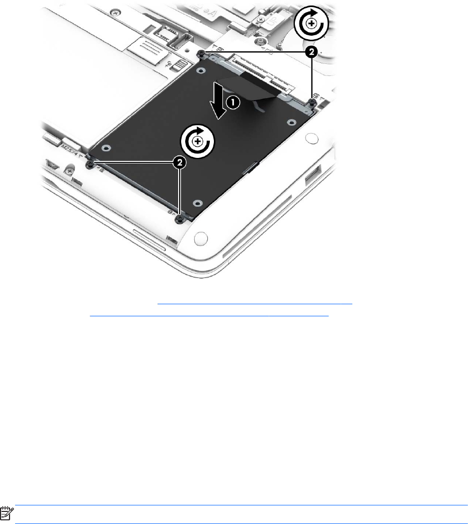 2. Vratite četiri vijka (2) na mjesto da biste učvrstili tvrdi disk.