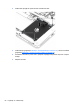 5. Otpustite četiri vijka na vratašcima tvrdog diska (1). Podignite jezičac od tkanine tvrdog diska (2)