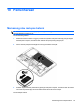 Lepas penutup akses untuk mengakses baterai, slot modul memori, harddisk, label pengaturan, dan