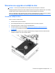 1. Cu computerul întors invers, glisaţi siguranţa de eliberare a capacului de service până în poziţia