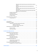 katasandi diset di Computer Setup 54 mengeset di sistem operasi 54 katasandi administrator BIOS memasukkan 55 membuat 55 mengatur 55 katasandi drivelock membuat 55 mengatur 55 keamanan, nirkabel 17 keypad 20 keypad, eksternal menggunakan 21 num lock 21 keypad angka tertanam, mengenali 20 komponen atas 4 bawah 12 depan 8 layar 11 samping kanan 9 samping kiri 10 koneksi WLAN perusahaan 15 koneksi WLAN publik 15 konfigurasi sambungan Internet 16 konfigurasi WLAN 16 L label Bluetooth 73 Modul Pitalebar Bergerak