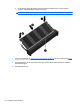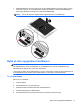 3. Med batteribrønnen vendt mot deg skyver du servicedekselutløseren mot høyre (3) og, hvis du