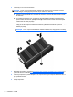 a. Desfaceţi clemele de reţinere (1) de pe fiecare parte laterală a modulului de memorie.