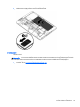 1. ใสแบตเตอรี่เขาไปในชองใสแบตเตอรี่ โดยจัดวางแท็บบนแบตเตอรี่ (1) ใหตรงกับรองบนคอมพิวเตอร แลวกด
