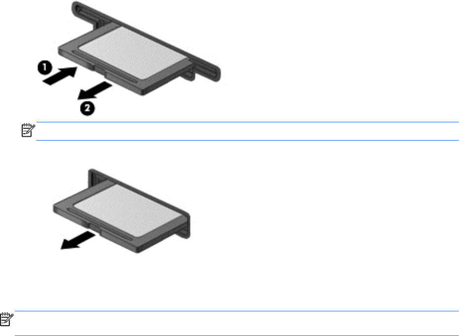 3. Appuyez sur la carte (1), puis retirez-la du connecteur (2).