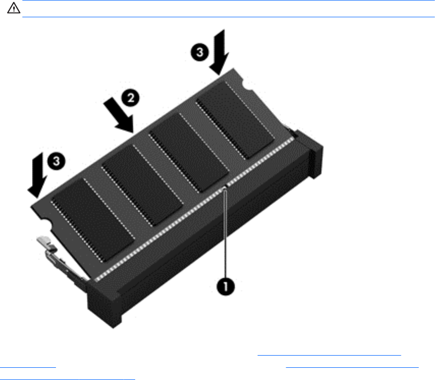c. Appuyez délicatement sur le module mémoire (3), en appliquant la même force sur ses
