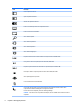Ícone Descrição Lista os aplicativos abertos. Ajusta os aplicativos abertos. Alterna entre aplicativos abertos. Exibe os comandos disponíveis em um aplicativo aberto. Exibe ou oculta a área de trabalho. Abre o botão Pesquisar. Abre o botão Compartilhar. Abre o botão Dispositivos. Abre o botão Configurações. Reproduz a faixa anterior de um CD de áudio ou a seção anterior de um DVD ou BD. Inicia, pausa ou retoma a reprodução de um CD de áudio, DVD ou BD.