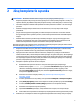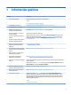 1 Informacijos gavimas Užduotys Instrukcijos ● Sąrankos instrukcijų arba Sparčiosios sąrankos plakatas Jūsų kompiuterio sąranka – arba – Žr. „Jūsų kompiuterio sąranka“ 3 puslapyje. ● Prisijungimas prie interneto Žr. Prijungimas prie interneto (tik kai kuriuose modeliuose) 4 puslapyje. ● Gamyklinių parametrų atstatymas Žr. „Sistemos atkūrimas“ 16 puslapyje. ● Praktiniai vaizdo įrašai apie jūsų kompiuterio funkcijų naudojimą Apsilankykite http://www.hp.com/supportvideos (tik anglų kalba).