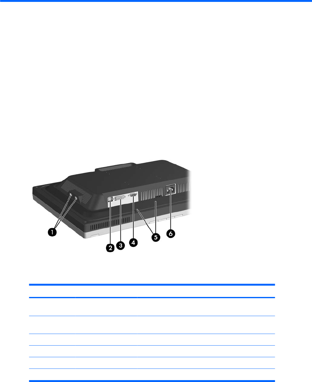 6 AC Power Connector Connects the AC power cord to the monitor.