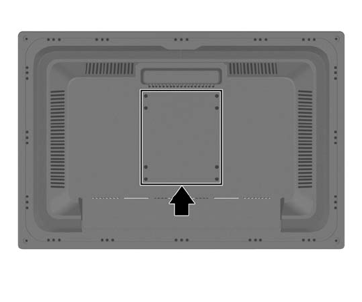 The monitor features two sets of VESA 100mm mounting holes. Use the top mounting holes to allow