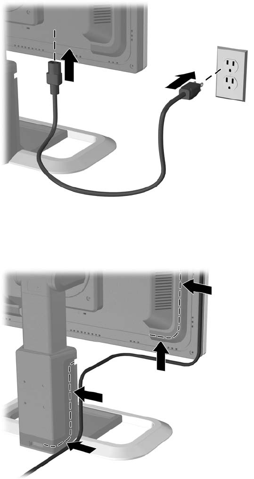 4. Place the cables through the cable management channel on the back of the monitor and on the