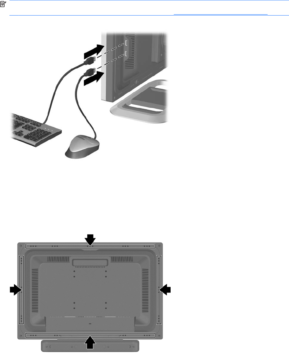 NOTE: You must connect the USB hub cable from the monitor to the computer or to a USB hub to