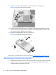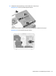SODIMM (1), а затем извлеките модуль из разъема (2).