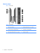 Deli ob strani Slika 1-3 Deli ob strani Tabela 1-2 Deli ob strani 4 Komponenta Komponenta 1 Optični pogon s pladnjem 6 Bralnik pomnilniških kartic HP 5-v-1 (opcija) 2 Gumb za izmet diska iz optičnega pogona 7 Vrata USB 3.0 3 Lučka LED za dejavnost optičnega pogona 8 Vrata USB 3.